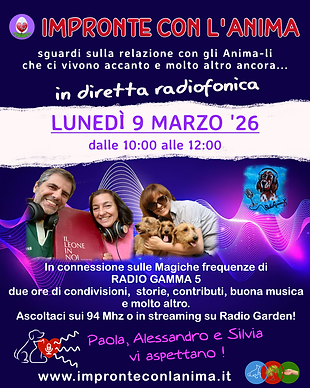 Dal 2014 Impronte con l'Anima opera per promuovere una più ampia visione della relazione che ci lega agli Anima-li che accogliamo nella nostra vita e nella nostra famiglia, anche con lo scopo di offrire strumenti di crescita interiore e di consapevolezza in una visione di co-evoluzione. Continua